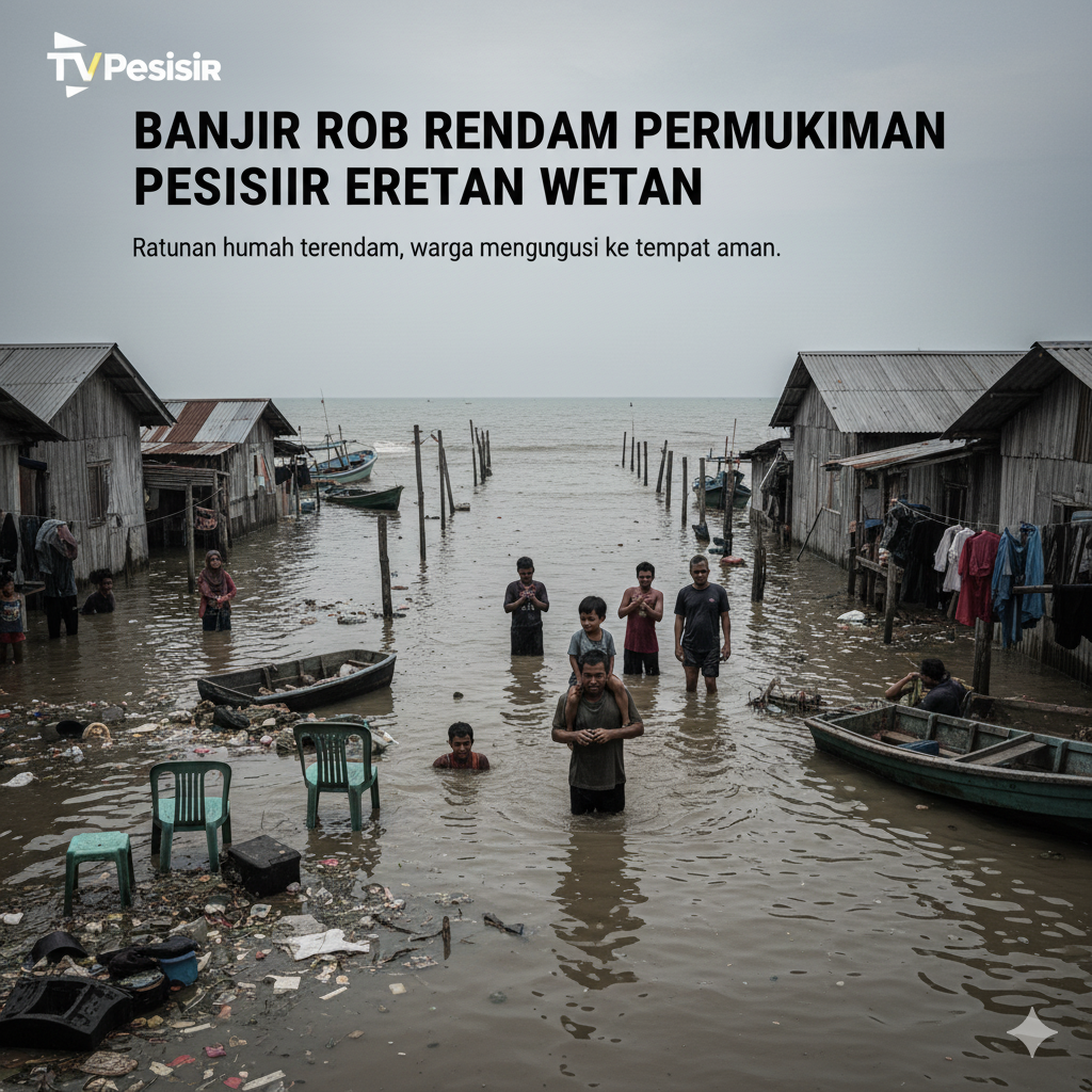 Eretan Wetan, Indramayu — Banjir rob kembali merendam puluhan rumah warga di wilayah pesisir Kecamatan Kandanghaur. Air laut masuk sejak dini hari dan mencapai ketinggian 40–60 cm. Warga berharap pemerintah segera memperbaiki tanggul yang sudah lama jebol. Pada kejadian ini tidak ada korban jiwa.