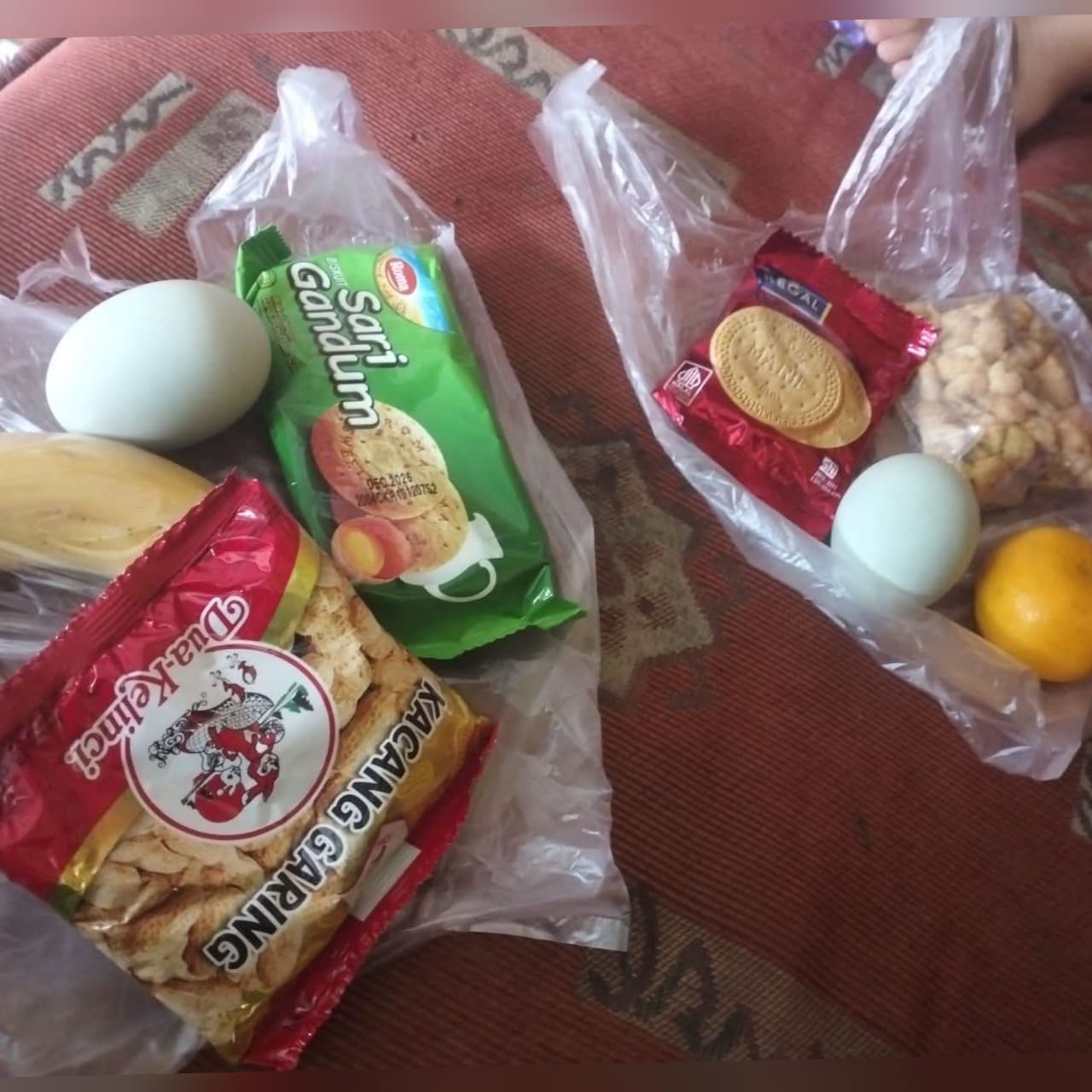 Dalam postingan akun facebook itu, tampak 2 (dua) bungkus plastik putih berisi segelintir makanan dengan jenis masing-masing 1 (satu) produk pada bungkus pertama diantaranya kacang garuda, biskuit sari gandum, buah pisang, dan telor asin. Sedangkan pada bungkus plastik yang kedua, berisi makanan berupa buah jeruk, biskuit regal, kacang tanpa merk, dan telor asin.